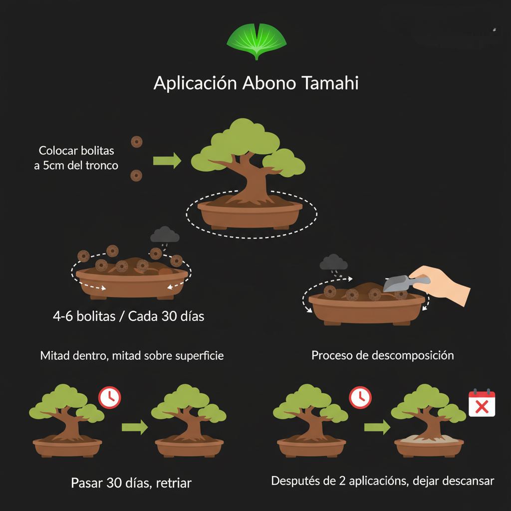 Se aplican a de 4 a 6 bolitas al rededor cada 30 días. Incorporando la mitad dentro y la mitad sobre la superficie.