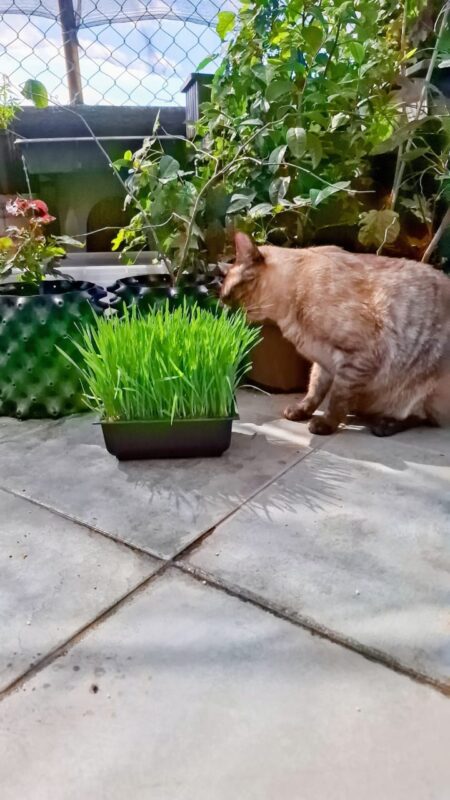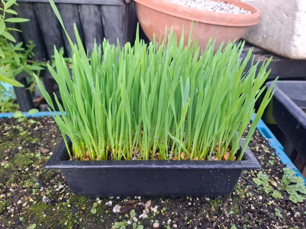 - Cosecha: Cuando el pasto alcance unos 10-15 cm de altura (aproximadamente 10-12 días), estará listo para que tu gato lo disfrute. Puedes ofrecérselo diario y rotar la maceta para tener pasto fresco constantemente.